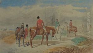 A Huntsman With Two Saddled Hunters And A Pack Of Hounds; Andhuntsmen Opening A Gate