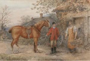 Rural Workers With Horses Outside A Cottage