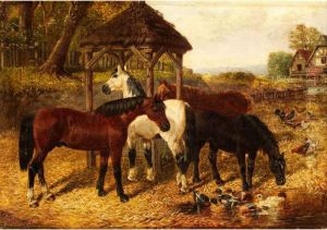 Horses And Fowl In A Farmyard