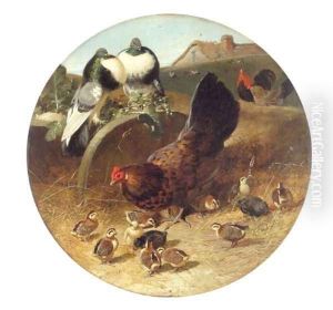 Hen With Chicks & Pigeons