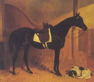 A Bay Hunter and Spotted Dog in a Stable 1846
