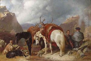 The Evening Hour, Horses And Cattle By A Stream At Sunset
