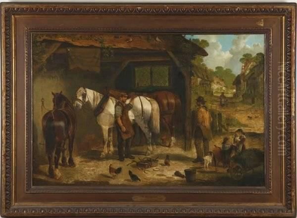 The Blacksmith Shop Oil Painting by John Frederick Herring Snr