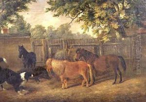 Bring the timeless beauty of John Frederick Herring Snr's The Farmyard with Horses, Ponies, Berkshire Saddle Backs, Alderney Shorthorn Cattle and Poultry into your home with a handmade oil painting reproduction. Carefully recreated on canvas by skilled artists using traditional techniques, this piece captures the delicate brushwork, subtle light, and vibrant color of the original masterpiece. With museum-level quality and rich texture, it brings elegance and artistic depth to any space. Enjoy free shipping and make this masterpiece a part of your personal collection.