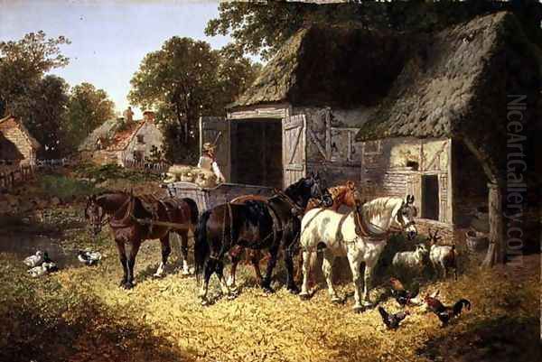Bring the timeless beauty of John Frederick Herring Snr's Three Horses at a Haystack into your home with a handmade oil painting reproduction. Carefully recreated on canvas by skilled artists using traditional techniques, this piece captures the delicate brushwork, subtle light, and vibrant color of the original masterpiece. With museum-level quality and rich texture, it brings elegance and artistic depth to any space. Enjoy free shipping and make this masterpiece a part of your personal collection.