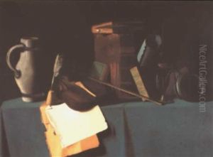 Still Life With Pitcher, Candlestick, Books And Match