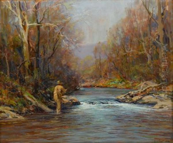 Bring the timeless beauty of John Frost's Fly Fisherman On A River into your home with a handmade oil painting reproduction. Carefully recreated on canvas by skilled artists using traditional techniques, this piece captures the delicate brushwork, subtle light, and vibrant color of the original masterpiece. With museum-level quality and rich texture, it brings elegance and artistic depth to any space. Enjoy free shipping and make this masterpiece a part of your personal collection.