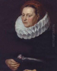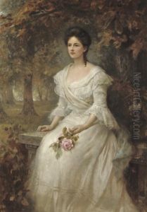 Portrait Of A Lady In A Blue Dress, Three-quarter Length, Holding A Rose