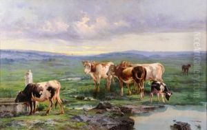 Mucche All' Abbeverata Nella Campagna Con Roma In Lontananza