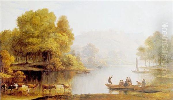 Cattle And Ferry On The Thames, Windsor Castle Beyond