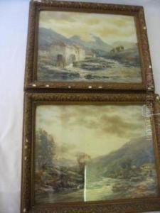 Two Figures Sitting In Meadow; & A Companion, Sheep Grazing By A River