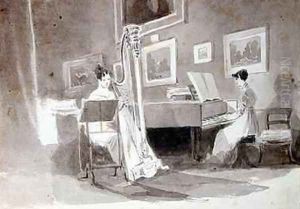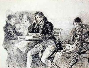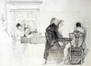 Social Interior at Brathay Hall depicting Jessy Harden Rev Owen Lloyd and H Almack