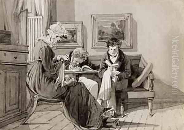 Social Interior at Brathay Hall depicting Jessy Harden Rev Owen Lloyd and H Almack - Hand Painted Oil Reproduction