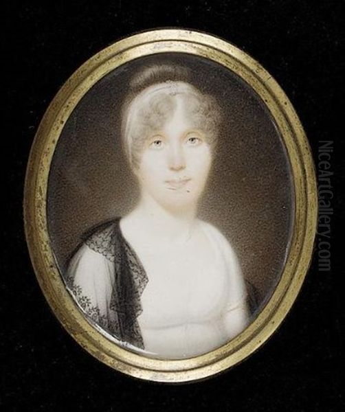 Mr. Rudd Wearing Black Coat, Frilled White Chemise And Tied Stock (+ Mrs. Rudd Wearing White Dress, Matching Bandeau And Black Lace Shawl, Sgd.; Pair)