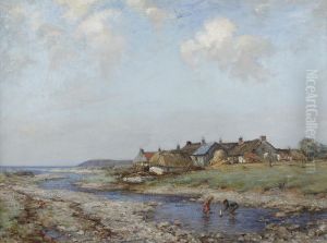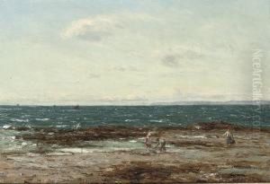 A Scottish Coastal Landscape With Three Children Picnicking