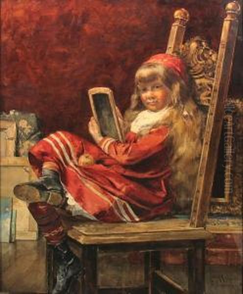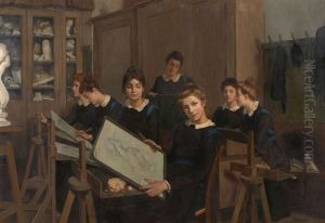 A Portrait Of A Young Girl Sketching