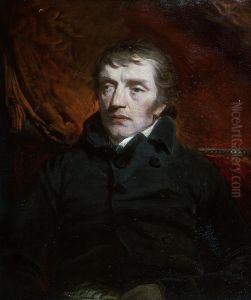 Portrait Of Zachary Bayly Edwards,half-length, In A Brown Coat And A White Cravat, Seated Before Ared Curtain, A Landscape In The Distance