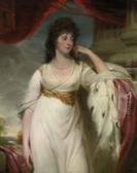 Portrait Of A Lady, Probably Hyacinthe, Marchioness Of Wellesley(1766-1816), Three-quarter-length, In A White Dress With Anermine-lined Cloak, By A Column