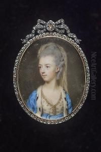A Miniature Portrait Of A Young Gentleman, His Auburn Hair En Queue And Wearing A Royal Blue Jacket And Frilled Cravat