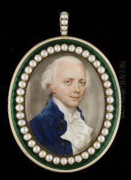 A Gentleman, Wearing Blue Coat, White Waistcoat, Frilled Chemise And Tied Stock, His Hair Powdered And Worn