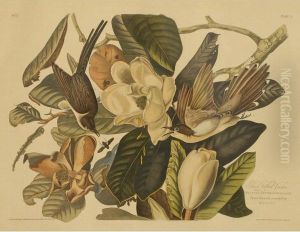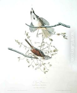 A Chaffinch, Bullfinch and Greenfinch on a Branch of Budding Chestnuts