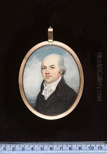 A Gentleman Wearing Black Coat, White Waistcoat, Frilled Chemise And Tied White Stock, His Hair Powdered