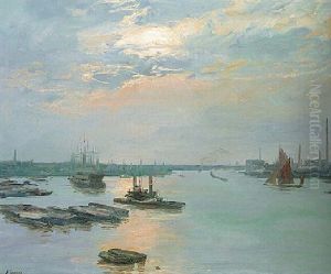 Kite Balloon And Grand Fleet In The Distance, The Piers, Forth Bridge