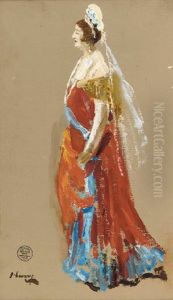 Portrait Of Madame Max Porges In A Red Shawl And Black Dress
