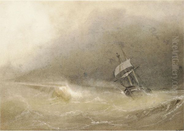 A Brig Reefed-down In Heavy Seas
