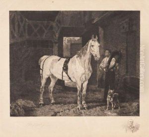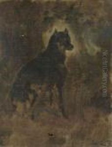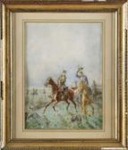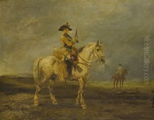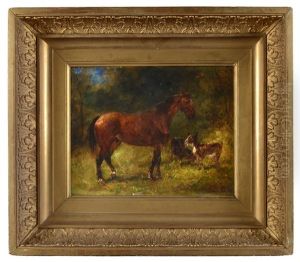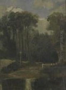 A Carriage With Figures And A Dog In An Extensive Landscape