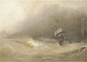Lord Belfast's Yacht Emily Off Themediterranean Coast With A Xebec Off Her Port Bow