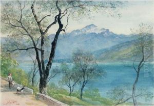 Lake Lucerne With Women Feeding Pidgeons In The Foreground