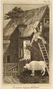 A Shepherd And His Flock On A Hillside With Cottages In Thedistance