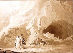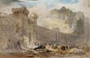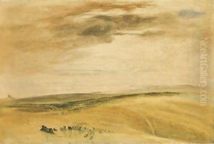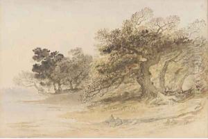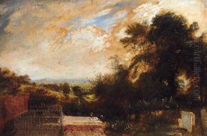 A Country Graveyard, Possibly Bunhill Fields, Finsbury, A Wooded Landscape Beyond