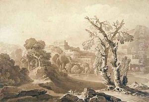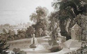 View of the Temple of Suryah and the Fountain of Mahah Doo with a distant view of the north side of the Mansion House