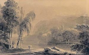An Angler By A Lily Pond, A Church Beyond