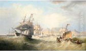 Shipping In A Swell Oil Painting by John Moore Of Ipswich