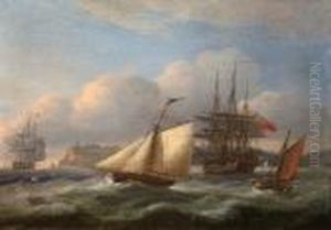 Shipping In Rough Seas Oil Painting by John Moore Of Ipswich