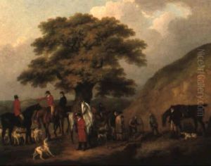 Colonel Newport And His Hounds In An Extensive Wooded River Landscape