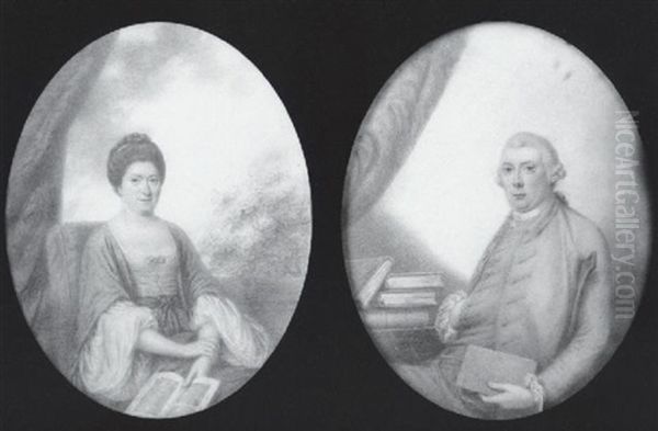 Portrait Of A Lady With Bandeau In Her Upswept Hair, Wearing Coat Dress, Holding An Open Book In Her Left Hand