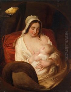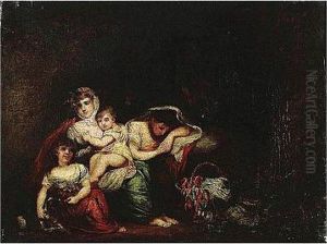 Portrait Of A Lady And Her Son, The Former Three-quarter Length, In A White Dress