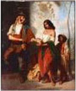 A Spanishgirl And Companion, She Seated With Still Life, He With A Wine Juga Pair