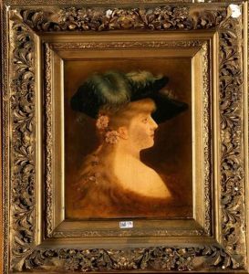Portrait Einer Eleganten Dame, An Einer Barocken Kommode Lehnend