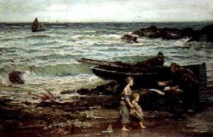 Fishermen And Boys By A Slipway
