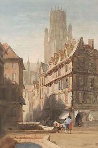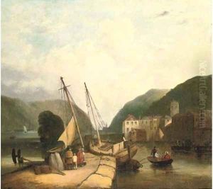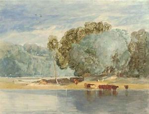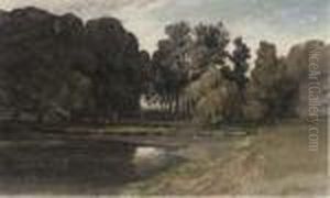 A Child Playing In A River Below A Cottage, Guildford, Surrey