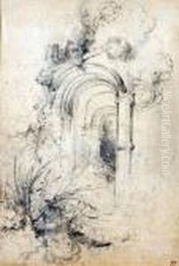 A Crypt Interior (possibly Westminster Abbey)