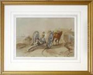 Figures In A Busy Harbour Scene; Watercolour, 31x46cm