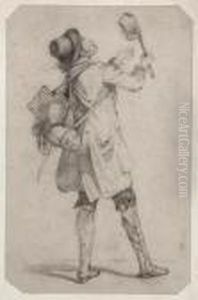 A Pedlar Boy Standing By A Column