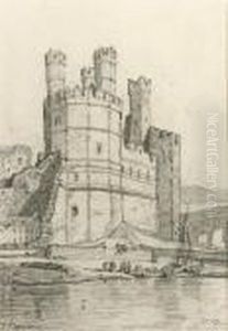 Cattle Watering By Llanberis Lake From Dolbadarn Castle, Withsnowdon Beyond, North Wales