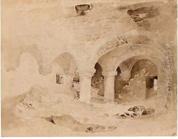The Vaults Below Slingsby Castle, Yorkshire Oil Painting by John Sell Cotman